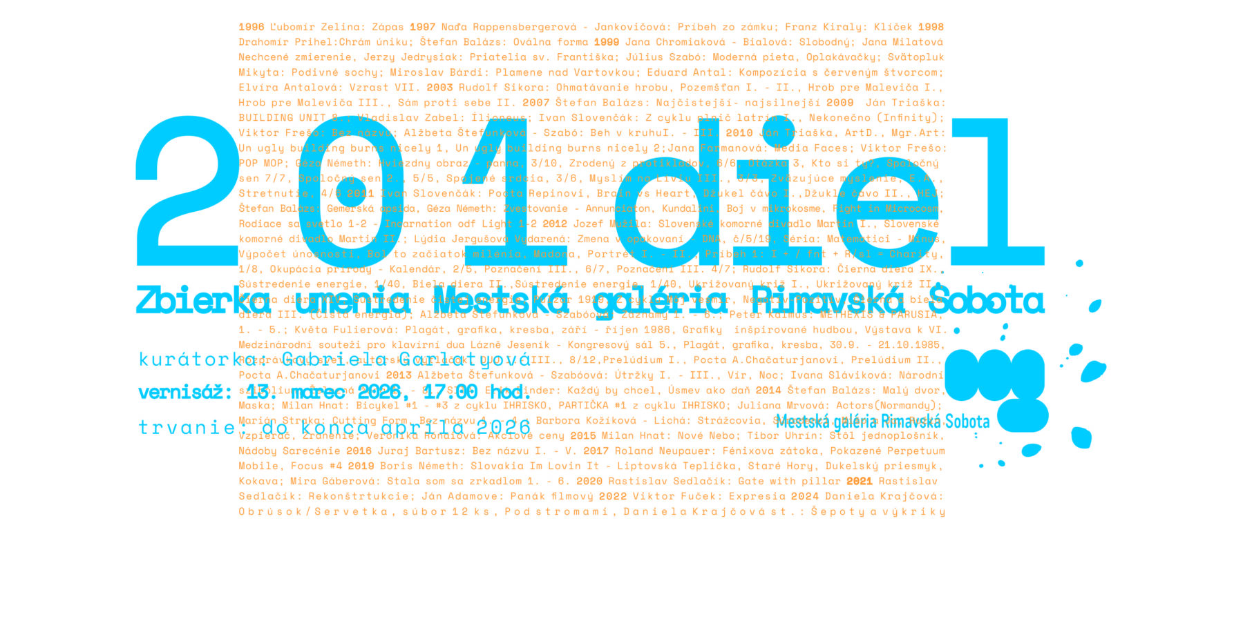 Mestská galéria v Rimavskej Sobote Vás srdečne pozýva na Noc v galérii 2026 v sobotu 23. mája 2026 od 18.00 do 21.00 hod. Program: 18.00 Otvorenie podujatia. I. diskusia so špeciálnymi hosťami, predstaviteľmi mesta Rimavská Sobota, k výstave 201 diel v Zbierke MG RS s témou vzniku a činnosti galérie. Moderuje: Gabriela Garlatyová, kurátorka výstavy a galérie. Komentované prehliadky k aktuálnej výstave 201 diel,